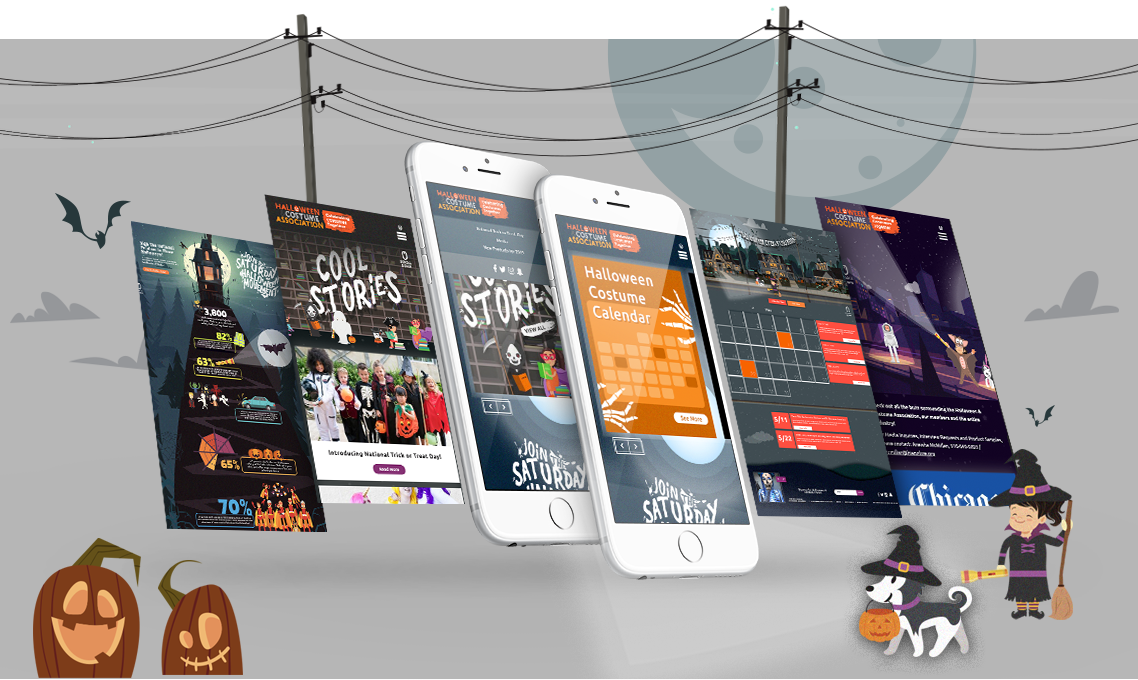 In helping the Halloween & Costume Association, above all, we wanted everything from the design assets to the web pages to capture what Halloween is at its core — a celebration of community and self-expression for adults and kids alike. Our graphics encourage everyone to celebrate, “throw a wicked party” and join in the festivities.
