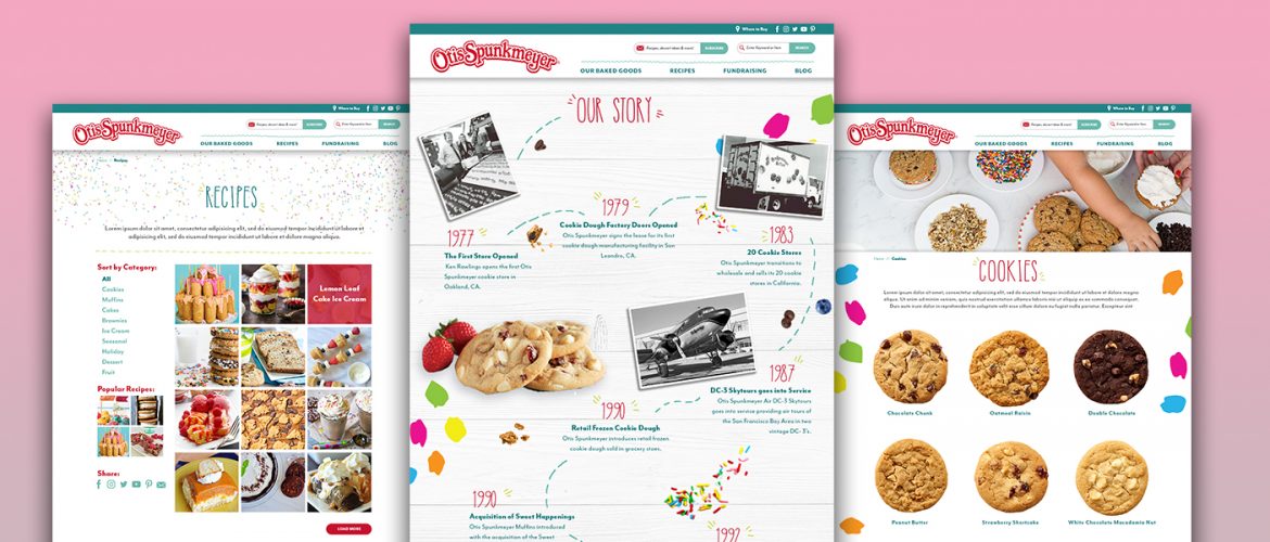 Otis Spunkmeyer tasked Hark to help in elevating their brand by targeting a younger audience and parents. We increased the energy on their site by pushing their existing brand color palette to include brighter, more energetic colors such as lime green. We introduced new textures and patterns that subtly animate as the user explores the site – such as squiggly lines that draw themselves as you scroll, falling confetti and sprinkles, and dessert images that spin while you hover.