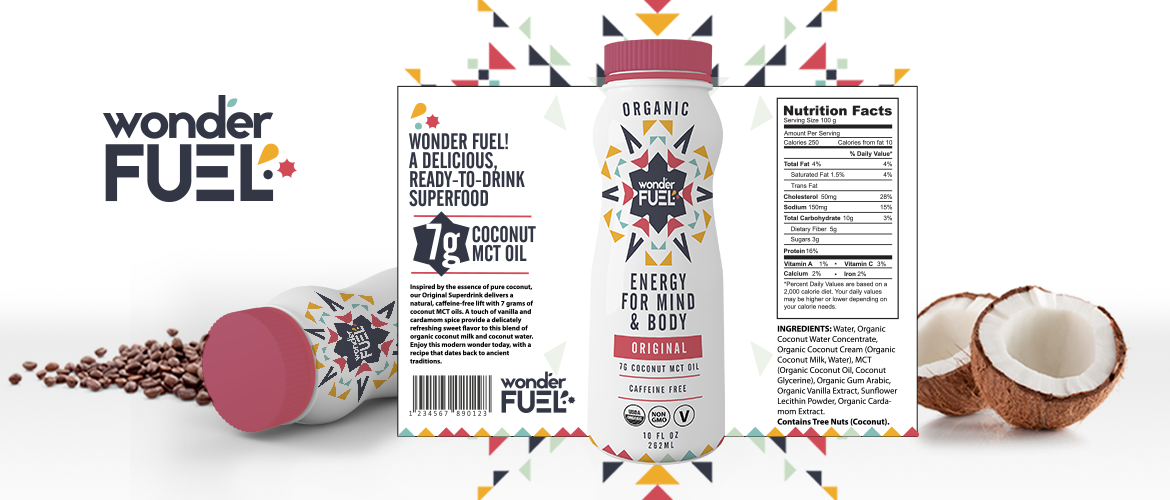 Wonder Fuel is an energy drink for the mind and body, created from coconut MCT’s. This beverage is organic, non-GMO, vegan, sugar-free, dairy free, soy-free and gluten-free, with no artificial sweeteners… and yup, it still tastes amazing! The company reached out to Hark to help reorganize their product label. The design team successfully completed the challenge of fitting all of these important selling points on the bottle. Not only in an eye-catching, attractive way but also with a visual hierarchy that encourages the buyer to choose this drink over the competition.